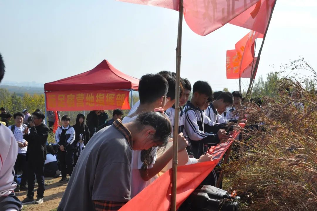 上午10:50所有師生成功到達(dá)了大本營。此時提前到達(dá)的志愿者隊(duì)員已經(jīng)為大家搭好了帳篷、做好了各項(xiàng)指示標(biāo)牌。按照事先規(guī)劃的場地,各班安營扎寨,原地休息,養(yǎng)精蓄銳,準(zhǔn)備登頂。