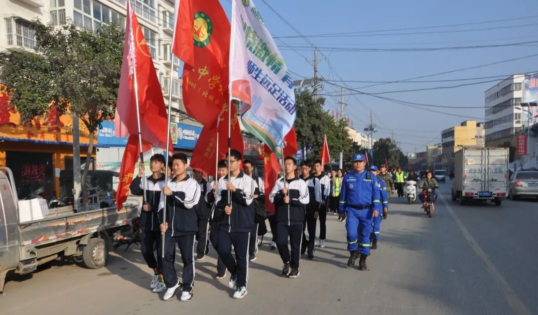 “出發(fā)!”史校長一聲令下,警車開路,旗手引導(dǎo),救護(hù)車斷后,全校1600名師生,浩浩蕩蕩,向著磨山出發(fā)。