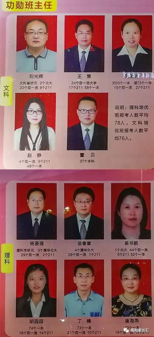 由此看來南陽一中對培養(yǎng)學(xué)生的老師榮譽(yù)還是比較重視的,包括在某后默默貢獻(xiàn)的備課組老師也進(jìn)行了展示。由于展示照片比較多,南陽家長匯本次先選擇了功勛班主任和主科老師,隨后再更新其他老師。